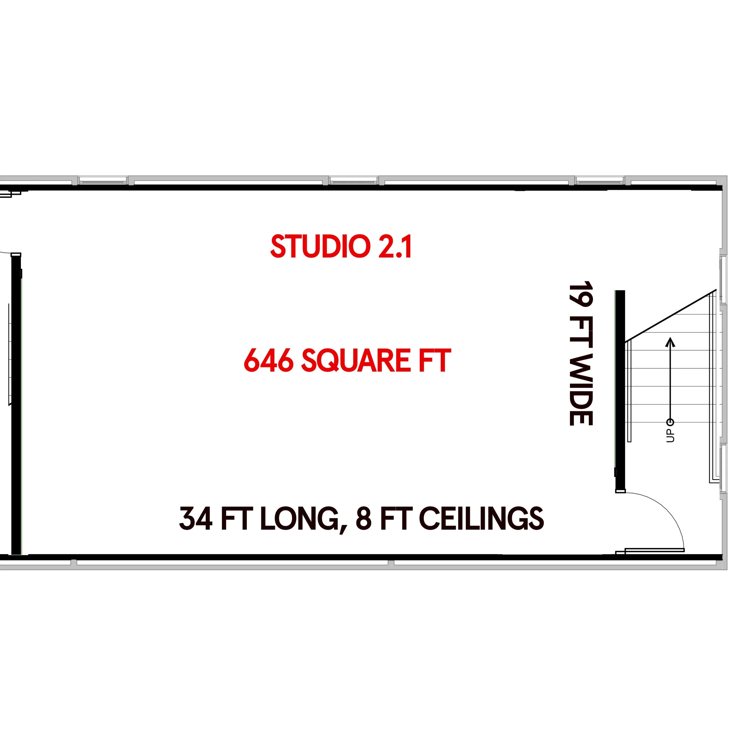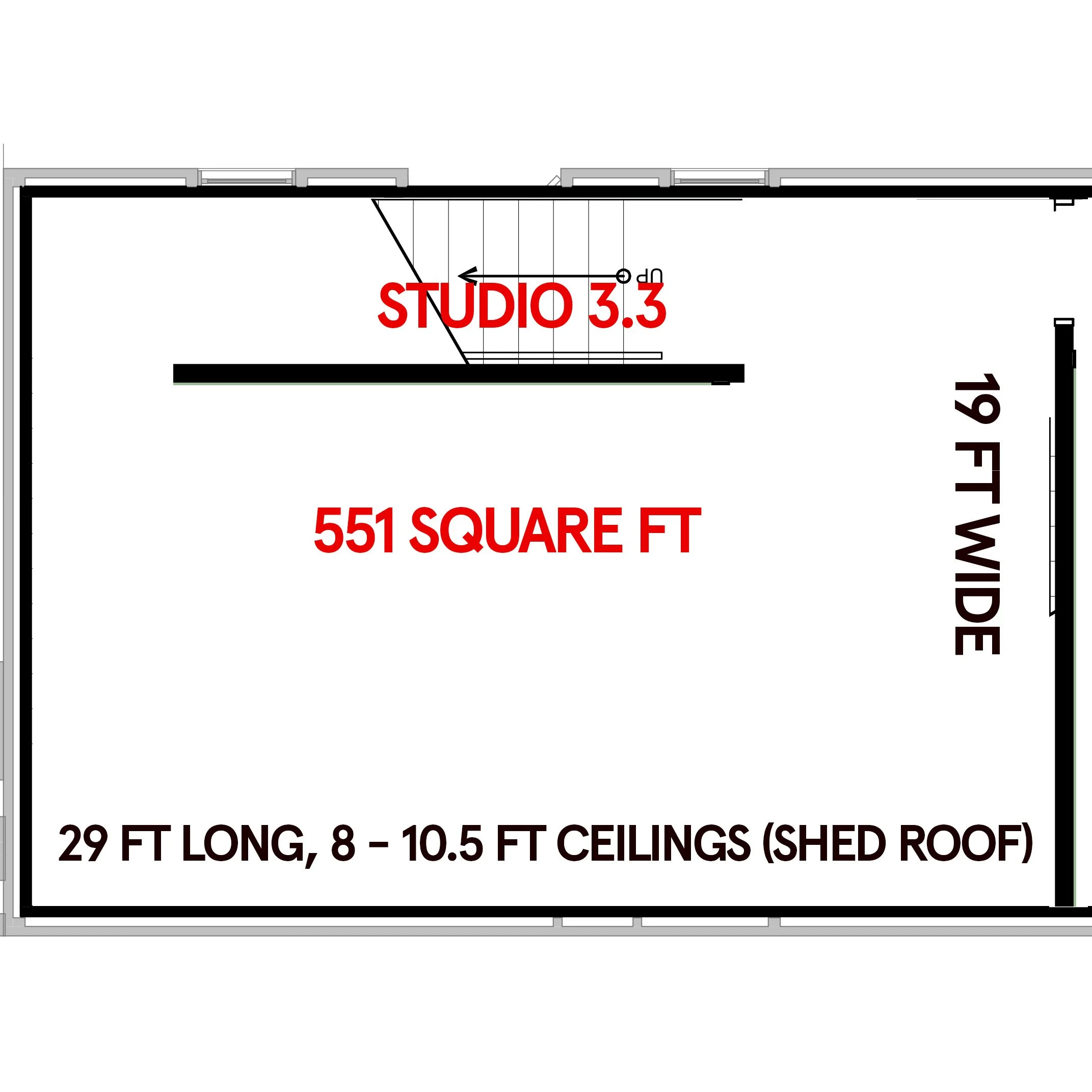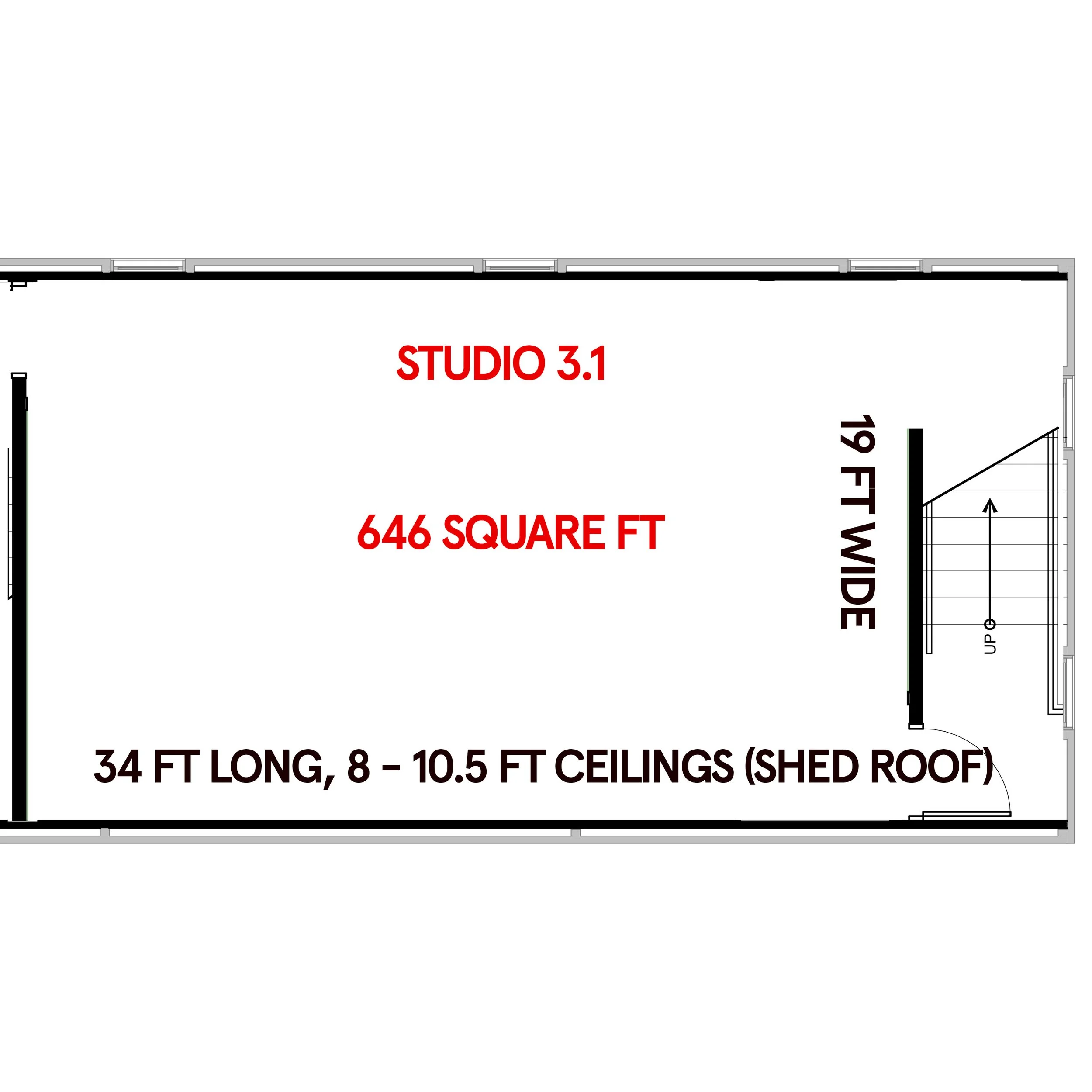 Their own studio, approximately 550-680 square ft, located in a separate building on our property called the Lumber Shed.
